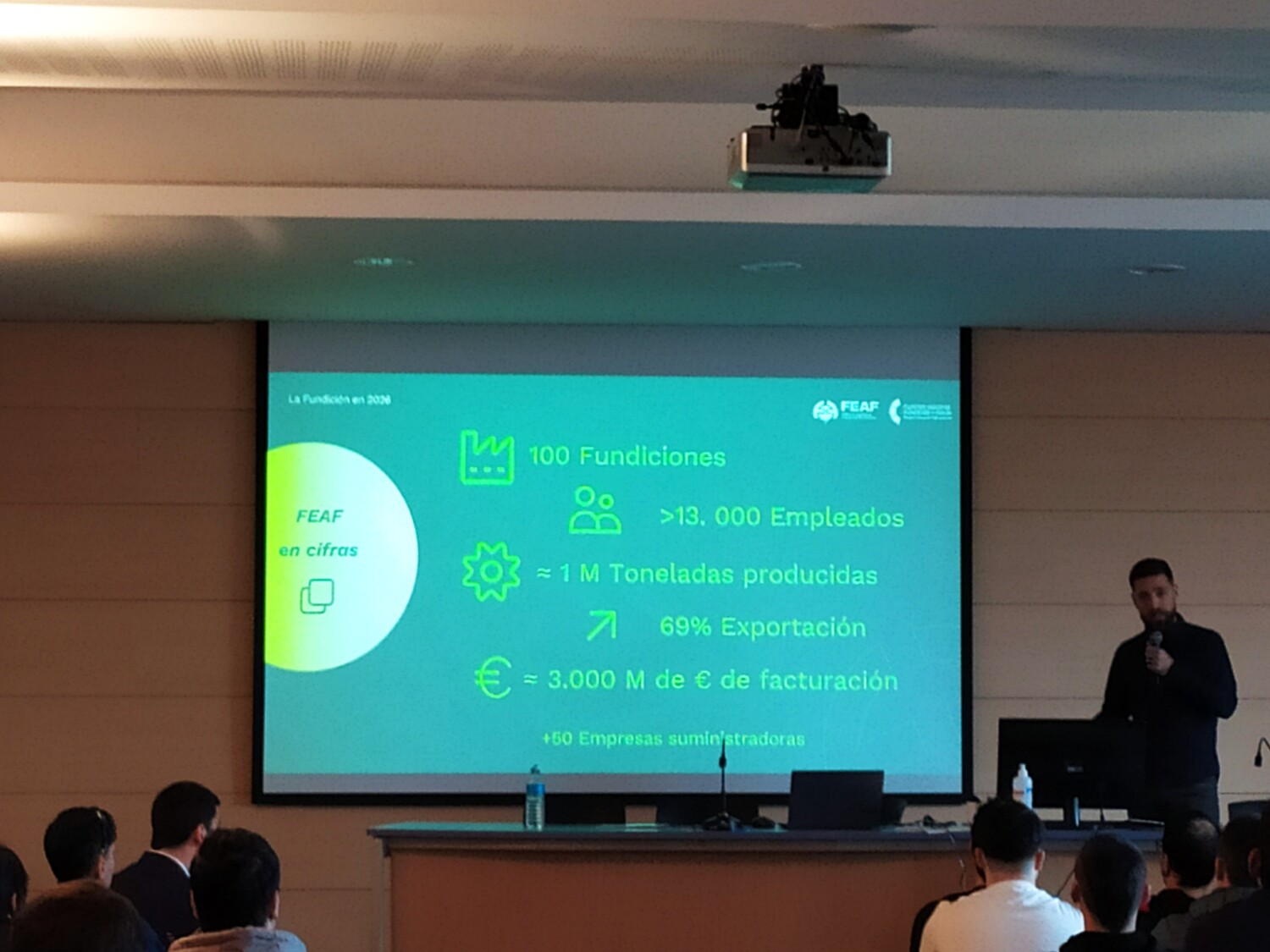 La sesión ha comenzado con una presentación a cargo de FEAF, en la que se ha destacado el papel estratégico de la fundición dentro de la industria metalúrgica y su evolución hacia un modelo más tecnológico, automatizado y sostenible, alineado con los retos de la fundición en 2026. Durante la intervención se ha subrayado la importancia de la innovación, la digitalización y la sostenibilidad como pilares del presente y futuro del sector.